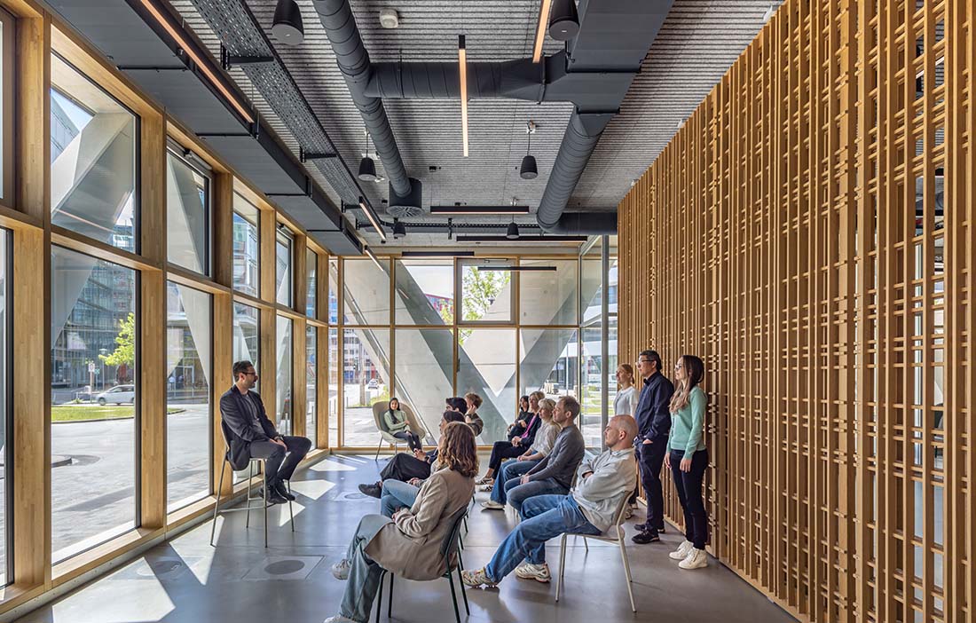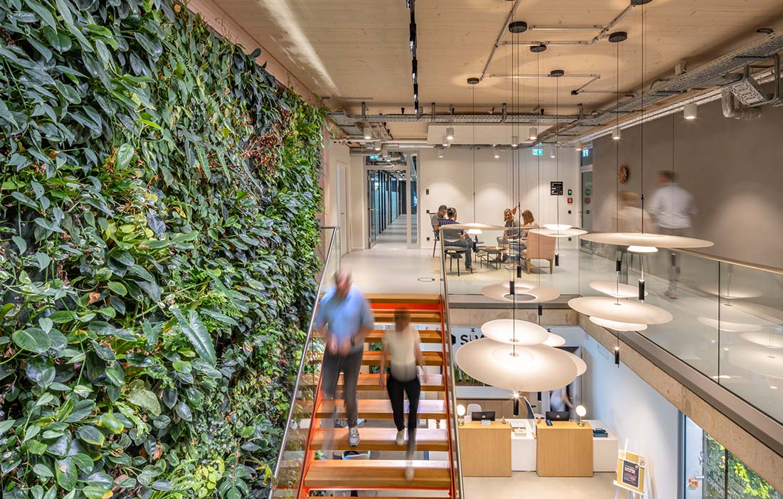 “With The Cradle we wanted to create a work environment that supports health and wellbeing. By combining natural timber, living walls and clay surfaces we achieve an atmosphere and air quality that makes people feel alert, focused and inspired every day,” says Antonino Vultaggio.