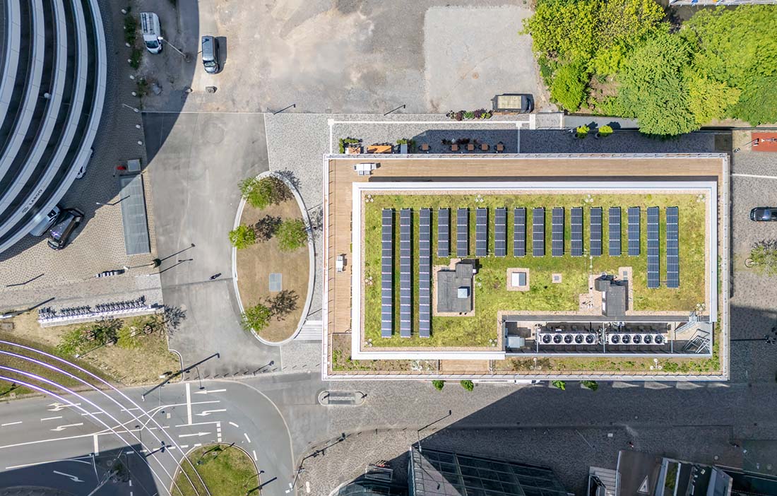 Just a few hundred metres from HPP Architekten's head office in Düsseldorf's old harbour district stands The Cradle – a building where almost every component can be reused. It is Germany's first office building developed entirely according to the Cradle to Cradle principle, an international standard for circular and sustainable design. The principle is based on keeping everything in closed loops, and on every solution creating added value; it underpinned the sustainability strategy developed together with the client, The Cradle GmbH & Co. KG.