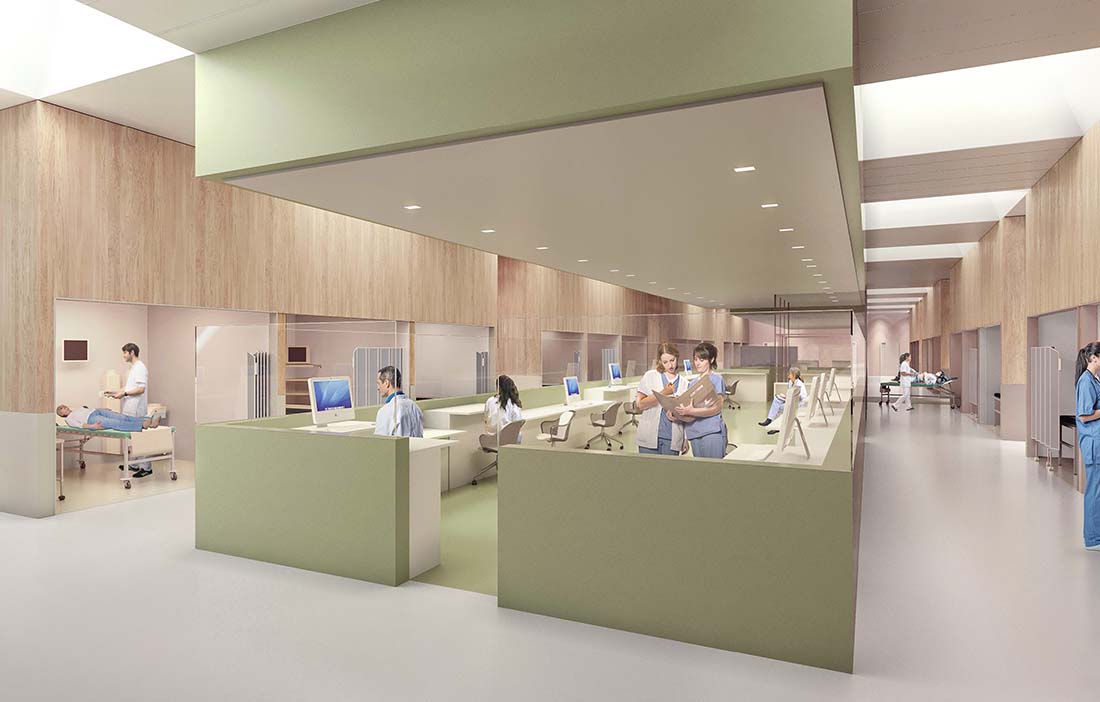 “We see that timber in hospital environments is becoming increasingly common, precisely because it is aesthetically appealing and provides a warmer feel. Research also shows that visible timber can have a positive effect on patients.