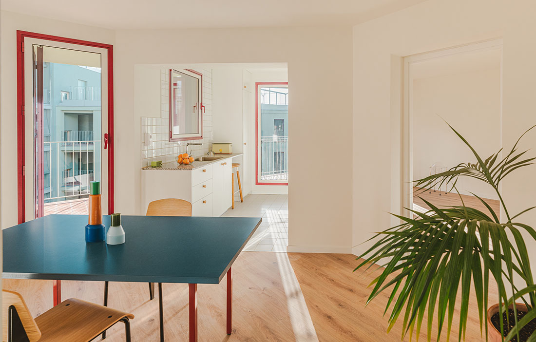 "We want to change that and have coined the term 'kitchroom'. In Illa Glòries, the kitchens are consequently positioned against the external wall and the access balconies. They have windows in two directions, providing views and access to natural light and ventilation. The kitchens are also positioned so that sightlines into the apartment are as long as possible,” says Ivet Gasol Escuer.